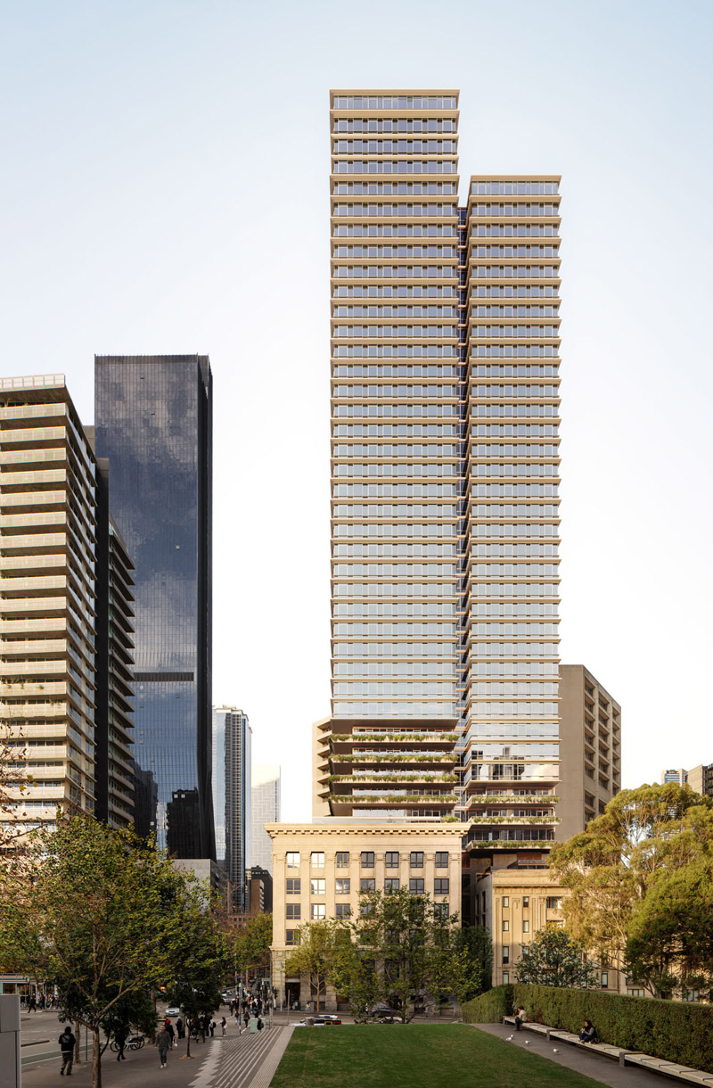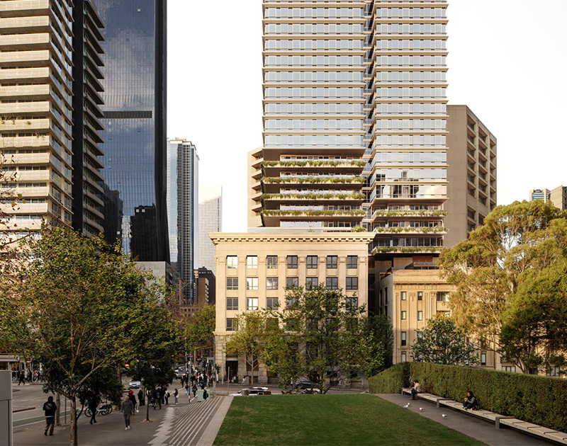 Last month, Sterling Global secured a permit for its 623 Collins project, which covers 2000 square metres across three titles. The project includes 2700 square metres of office space and a ground-floor restaurant in the 1924 State Savings Bank of Victoria building, as well as retail space, a hotel and 320 apartments in the tower above the adjacent Batman’s Hill Hotel building.