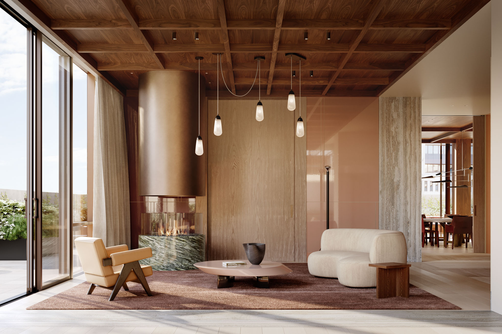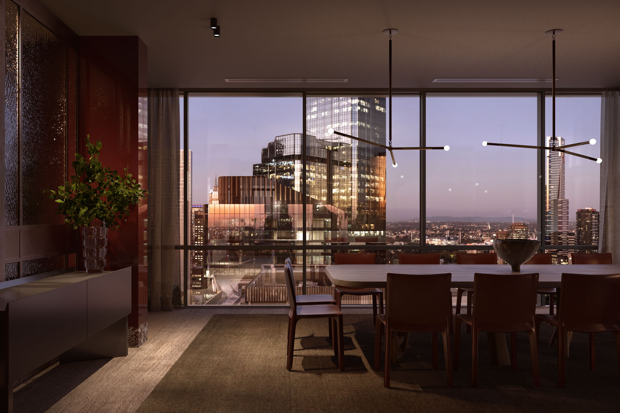 Framed by expansive views across the city and bay, this area is completed by an outdoor terrace, providing a landscaped retreat in the sky.