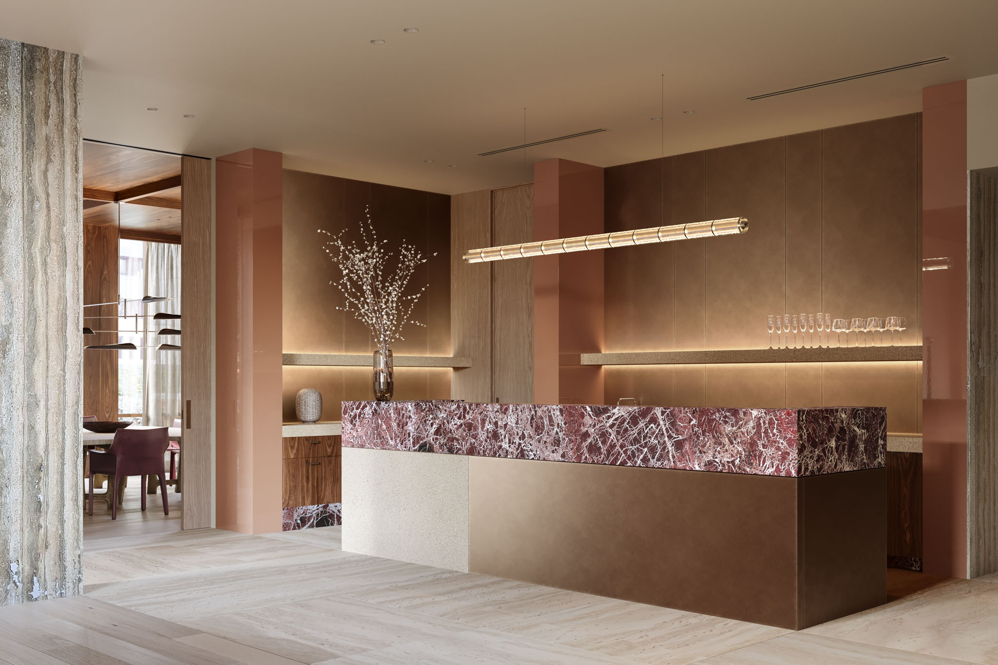 Exclusively for Reserve and Penthouse residents, the Sterling Club on Level 38 elevates private living with a whisky room, club-style lounge, show kitchen, and intimate dining area.